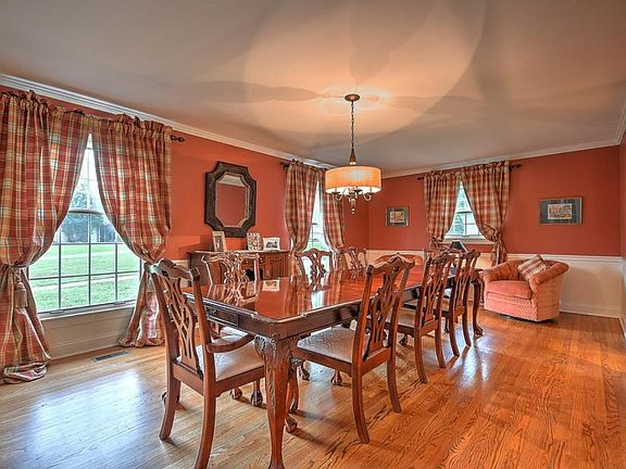 Ridgefields - Spacious brick one-level home with 5 bedrooms, 3.5 baths, beautiful hardwood floors, formal living room, huge formal dining room, charming kitchen with Corian countertops and lots of cabinets, cozy family room with fireplace and a fantastic sunroom. There's a covered front porch, lovely patio area, and a detached 2-car garage terrific level yard in a wonderful neighborhood with park, playground, and walking trail. Great School district.