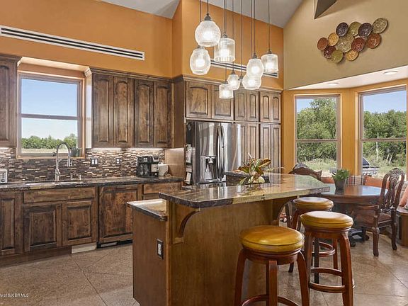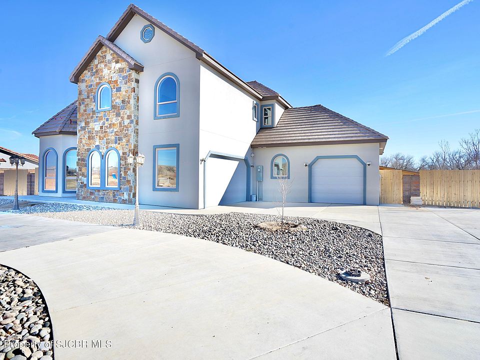 Extraordinary two story home on the highly coveted Animas river! Fantastic split bedroom floor plan, with master bedroom and office on the main floor. Four bedrooms, two and a half bathrooms, family room with built ins on the second floor, plus a bonus loft! The backyard was built to entertain enjoy all that New Mexico has to offer with the Animas River, wildlife and a state of the art 22x44 in-ground salt pool, with rock slide and water feature complete with a retractable pool cover and outside shower! Already set up for an outside kitchen and hot tub. You must see this home to appreciate the high end fixtures and beautiful architectural features.