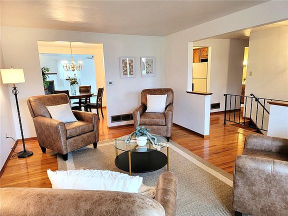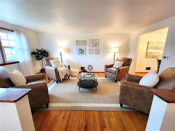 Bigger than it looks, this ranch house has twice as much as the typical Pickford Plan home. Two LEVEL entries (front & walk out basement!), 2 bonus family/game rooms, 2 full baths, a 2-car garage, & even 2 gas fireplaces! With over 2000sf of living space, this 3 bedroom home is move-in ready w/beautiful recently exposed hardwood floors. The home's layout flows well as you enter the 18x12 living room & centers around the eat-in kitchen. The kitchen is open to the 10x9 dining room & into the oversized 19x13 family room w/corner gas fireplace. The 3 bedroom area is removed & quiet w/ two large 13x10 bedrooms & one generous 11x10 BR; the bathroom has an efficient split design. Downstairs is a full bath & fully finished 26x18 game room w/gas fireplace, large windows & recessed lighting. The basement is level w/the back of the home for easy entry downstairs too! Large 2-car garage & flat yard area for snowy & summer fun! NEW FURNACE, AC, WATER HEATER in 2021. EZ access to 79/279 corridor.