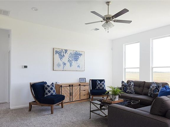 BUILDER IS OFFERING 2% OF THE PURCHASE PRICE FOR INCENTIVES. SEE BUILDER FOR DETAILS. This brand-new Evie Plan debuted as the first of our acreage series. The entertaining space is large and open. The living, large dining, and kitchen areas are perfect for large gatherings. The pantry is large and spacious. There is a pocket office bonus space tucked behind the kitchen. The back wall of windows allows you to look over your beautiful acre of land. O/A