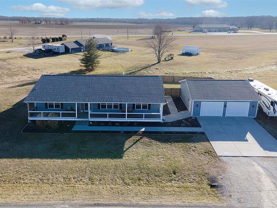 Better than new 4 year old ranch home. Experience luxury living in this stunning single-story home, boasting over 3000 sq. ft.of meticulously designed space. Featuring 4 bedrooms and 4 bathrooms, this residence offers the perfect blend of comfort and elegance. The master suite is a haven of tranquility, fit for royalty, complete with double vanities, a custom-tiled shower, & spacious walk-in closet. Another distinctive aspect of this home is its second bedroom, complete with ensuite. The heart of the home is the open floor plan, encompassing an attractive kitchen with solid surface countertops, ideal for the culinary enthusiast. The inviting great room, anchored by a cozy fireplace, seamlessly flows into an open staircase leading to a beautifully finished basement. In the basement, there is a home office, an extra-large family room, a pool table or recreation area, and a 4th bedroom/bath. Spacious fenced yard with a pool situated on 1.48 acres; two parcels: 12-06-16-452-015-016