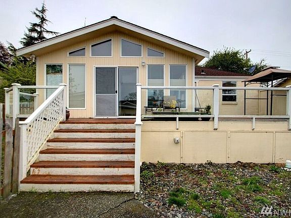 Perfect investment property with views of the bay and Mt Baker. Home is set up with 2 living areas on separate entries. Hardwood floors, large sun room, gas fireplace, 2 kitchens, 2 full baths and 4 bedrooms. Detached 2 car garage with RV parking. Main level living with additional space in finished basement that includes 2 bedrooms, bathroom and kitchenette with a private entry.