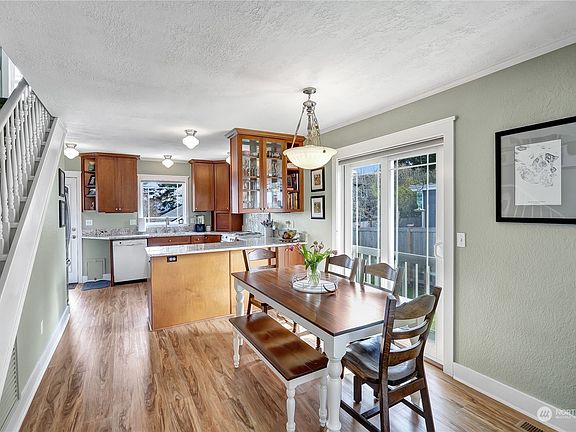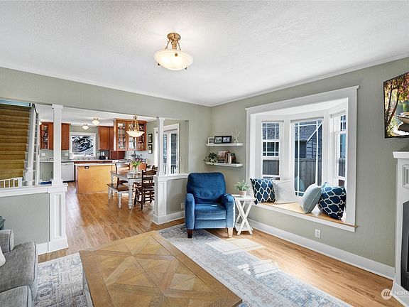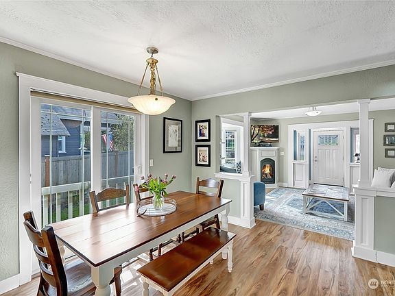 Charming Craftsman style home in the heart of Anacortes. Greeted by warm radiant heat flooring in the foyer you then step into the lovely living room with cozy corner gas fireplace, window seat w/bay window & luxury vinyl plank flooring. Easily remove the flooring to uncover beautiful softwood fir. Spacious dining room overlooks kitchen and living room. Granite countertops, ss fridge & deep farm sink adorn the kitchen. Two bedrooms & two baths on main level with oversize room with sloping ceilings on upper level. Lovely landscaping, garden space, fully fenced yard and back deck with Mt Baker views add to the cottage charm. Detached garage w/workshop is perfect for your hobbies or storage needs. Lower power bills courtesy of solar panels.