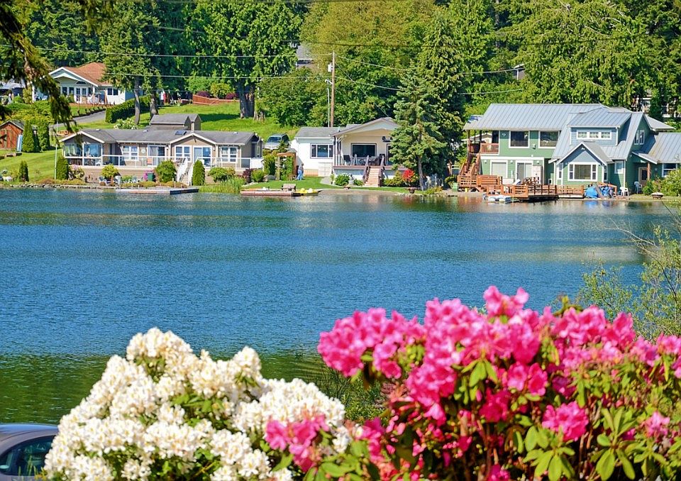 Panoramic view of Lake Ki from the living room, great room in the basement & the deck. This 2000 SF daylight rambler is situated on beautiful acreage w/garden space, shop space, and tall timber. Master on the main floor has a walk-in closet. LR & dining room are adjoining a modern kitchen. HARDWOOD FLOORING beneath the carpet throughout the entire main floor, except the kitchen. Newer furnace, windows & roof are just some of the recent improvements. Minutes to I-5. Lakewood schools. Wow!!