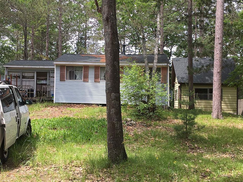 Enjoy the peace and tranquility with this nice home that needs a little TLC sitting on a quarter acre lakefront lot with mature trees and a great view of the private lake, The home comes with an extra bunkhouse for your guests or storage located just minutes from the City of Gaylord