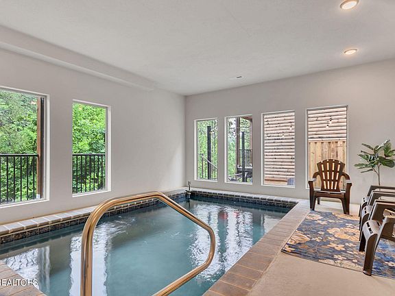 BRAND NEW CONSTRUCTION! 5-BEDROOM CABIN W/ INDOOR PRIVATE POOL and OUTDOOR HOT TUB & FIREPIT AREA w/ stringed twilight lighting. A modern, luxurious twist on a traditional cabin in the Great Smoky Mountains. Located in the heart of Pigeon Forge, this cabin is only 1 mile from The Island, Ripken's Baseball Stadium & The Parkway's attractions and 4 miles down the road to Dollywood. A total of 5 bedrooms, all of which have private bath en suites, along with 1 add'tl half bath! Two Master Bedrooms located on the main floor with three additional bedrooms situated on the 2nd floor. Let the fun begin! Amenities abound...take a swim in the private pool, soak in the hot tub, or enjoy a movie night in the theater loft. Cabin conveys fully furnished with fully-stocked kitchen and is turnkey ready for overnight short term rentals. NO MANAGEMENT RESTRICTIONS. Start (or expand) your investment real estate portfolio with this professionally-decorated, contemporary version of a traditional Pigeon Forge log cabin. Call Listing Agent to schedule your tour today!