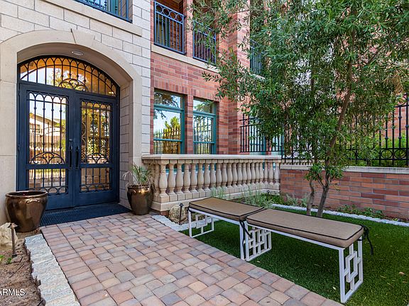 Wow! Spectacular townhouse located in Chateau on Central is a dream come true! This home affords an unmatched lifestyle of luxury & convenience. Discover an enchanting courtyard, an intimate oasis of tranquility that sets the tone for the rest of this incredible residence. Prepare to be impressed by an elegant interior adorned with soothing palette, tile flooring, & dazzling light fixtures, creating a peaceful ambiance that transcends throughout each room. Spacious living areas characterized by their modern fireplaces, a perfect blend of style & warmth for those cozy nights in! The chic wet bar is an entertainer's delight, ensuring that your guests will always be well-catered for. The beautiful kitchen is a chef's dream offering stainless steel appliances, white cabinetry, granite counters, stylish mosaic backsplash, & an island complete with a breakfast bar, perfect for those busy mornings. Main bedroom is comprised of a sitting area, a luxurious ensuite with dual vanities, soaking tub, & a large walk-in closet. There's also a second primary bedroom with a private bathroom. The true pièce de résistance of this exquisite property is the stunning rooftop balcony. This space showcases a majestic panorama, ideal for enjoying a morning coffee or evening cocktail as you take in the city's picturesque skyline! What's not to like? This gem won't disappoint!