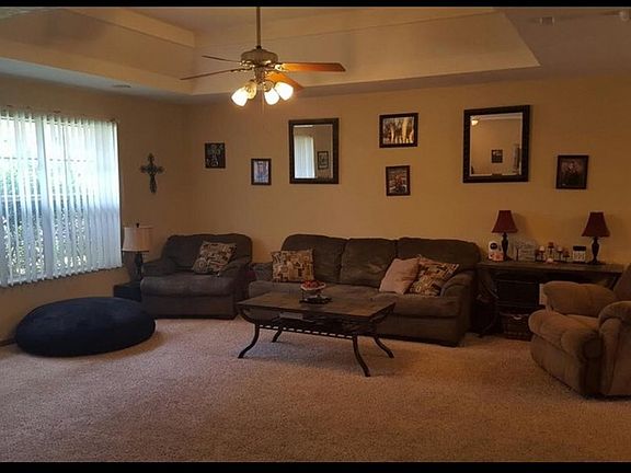 This darling home offers an open floor plan with lovely cabinetry throughout.Tray ceilings are a plus and lovely trees in the back yard along with a covered patio are wonderful for fun entertaining. Roomy bathrooms with tall ceilings provide extra light and the master bath is well lit with a sky light. This home has a security system with cameras and an over sized two car garage. Walking distance to nearby schools and shopping.
