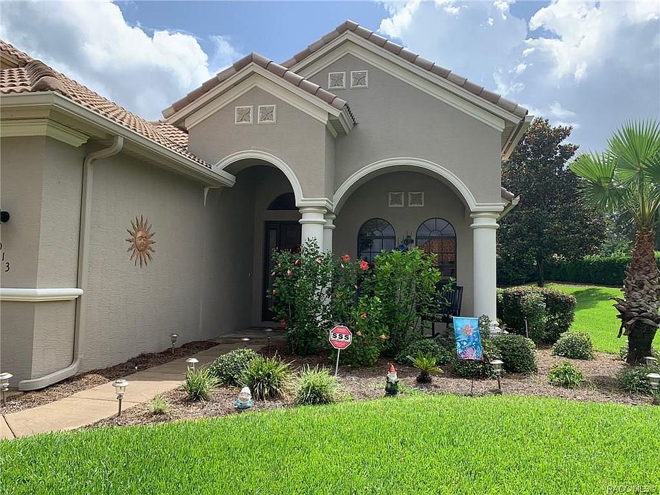 Custom built home in gated golf course community shows very well with beautiful screened pool surrounded by paver patio, privacy hedge on corner homesite in prestigious community of Westford Villas in Terra Vista. This spacious 3 bedroom, 2 bath villa includes double pocket doors leading to a private office with a closet that can be used as a 4th bedroom. This well kept 2009 home with many updates has corian kitchen counters, wood and tile floors in all the living areas, new carpet in the bedrooms, new paint, plantation shutters, wood cabinetry, custom blinds, surround sound, and newer stainless steel appliances. In addition to plenty of storage and closet space throughout this immaculate custom home, it is surrounded by gorgeous landscaping and it is easy to set up an appointment. This is a must see and compare to save $$ on new build! Make an appointment to see this home today and you will be proud to call it your home tomorrow!