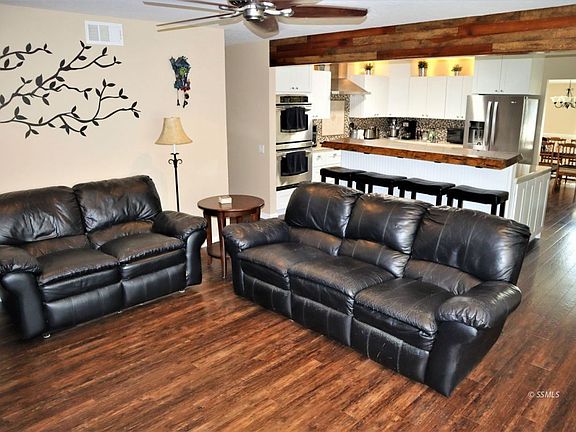 Great family home or investment opportunity in Lake Isabella on a quiet street. Property features 4 bedrooms, three full bathrooms and 1 half bath located in large upstairs bonus room with it's own bar and French doors exiting onto balcony. 2 unit evaporative coolers with separate thermostats ducted to each room, forced air heating throughout, dual pane windows, new 30 year roof, newly painted exterior, beautiful bricked fireplace with wood burning stove insert in living room, open concept kitchen with dine in bar and adjacent dining room with French doors exiting onto covered patio. Kitchen is newly remodeled with large island and dual stainless steel sink with garbage disposal, additional stainless steel prep sink, stainless steel dishwasher, stainless steel refrigerator, and large pantry. Laminate wood flooring in main living, dining, kitchen, master bedroom, and upstairs bonus room. Carpet in three bedrooms. Master bedroom has walk in closet and on suite bath including large shower/ soaking tub. Smaller second master bedroom with full bath and large shower capable of handicap access. Just minutes to the Lake and the Kern River, come take a look!
