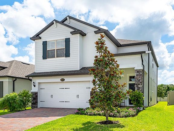 Welcome Home! This gorgeous MI Bedford model 4 bedroom home is less than 2 years old. No need to wait months for the builder to build one for you. Loaded with builder upgrades and looks like it's never been lived in. Enter through the front door into the two-story foyer with the elegant staircase to the upper floor. The large rectangular tiles take you to the huge family room which is fully open to the elegant kitchen, equipped with 42 in tall Espresso cabinets, a huge island with seating, granite countertops, stainless steel appliances, and large, white subway tiles. The kitchen also overlooks the dining area, across the covered paver floored porch, onto the huge fenced back yard. Downstairs also has a bedroom and powder room, currently used as a home office. The wood-planked stairs with turned wood spindles take you upstairs to a spacious loft which separates the elegant master suite with double vanities, a garden tub, and large shower. The walk-in closet will make you jealous! The secondary bedrooms all have roomy walk-in closets and storage abounds, including a giant storeroom under the stairs. The laundry room boasts a soaking tub is located upstairs, where the laundry originates. Located in one of the few new neighborhoods in Longwood and zoned for Lake Mary High, Greenwood Lakes Middle, and Longwood Elementary. Great schools, convenient location, and modern finishes. Make this your new home today!