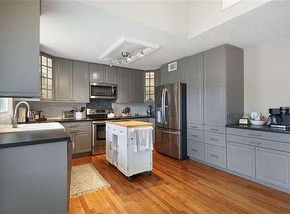 So much to love about this well maintained, move in ready home in wonderful Olathe neighborhood! Updated kitchen with stainless appliances, hardwoods and vaulted ceiling, overlooking family room with fireplace. All appliances stay including W/D and brand new refrigerator. Freshly painted interior lower level. Bright natural light draws you to the front room which can be used as a sitting room or formal dining. Master bedroom with walk in closet features newly updated shower in master bath. Large two tiered deck perfect for entertaining! Shed in back yard for extra storage. You will fall in love with the warmth and spacious feel of the open floor plan this home has to offer. Walking distance to park with running/bike trails and playground, while just a short drive to Black Bob Park with Farmer's Market and Heritage Dog Park. Walk your children to school just blocks away. Thermal windows, maintenance free vinyl siding, radon mitigation system installed and so much more! Unfinished basement provides for storage and can be used for workout room, or easily converted to more living space. Easy access to highway and restaurants. Don't miss out on this charmer!