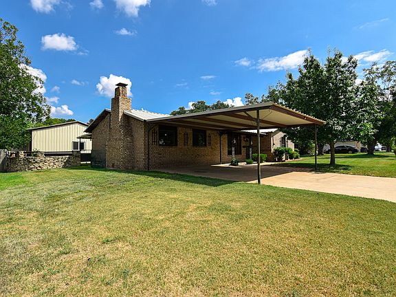This 3-bed, 1.5-bath brick home is more than a house, it is a place where you can imagine living, working, and truly enjoying every corner of your space. From the moment you walk in, it is filled with natural light thanks to its many windows creating a bright and airy feel throughout the home. A sliding glass door pulls you toward the backyard. Stepping outside, the property truly unfolds. Here you will find an impressive 1,040 sq. ft. shop that is ready for anything; whether it’s woodworking, car projects, or space for hobbies, it is truly a feature that instantly sets this property apart. The back patio feels made for summer cookouts and late-night conversations. A cluster of oak trees offers a shady retreat, while pecan trees stand ready to reward you in the fall. There is a garden shed for your tools, a three-car carport in the back, and another carport in the front—plenty of space for vehicles, projects, or guests. In the evenings, the wood-burning fireplace promises warmth and comfort, filling the room with that unmistakable cozy glow. A separate laundry:mud room offers plenty of space for an extra freezer or drink fridge. You will find comfortable bedrooms throughout, highlighted by one that is exceptionally spacious. All of this sits in a welcoming neighborhood, just down the road from the elementary school. This is not just a home, it is a place where you can see yourself really living.