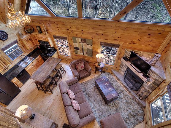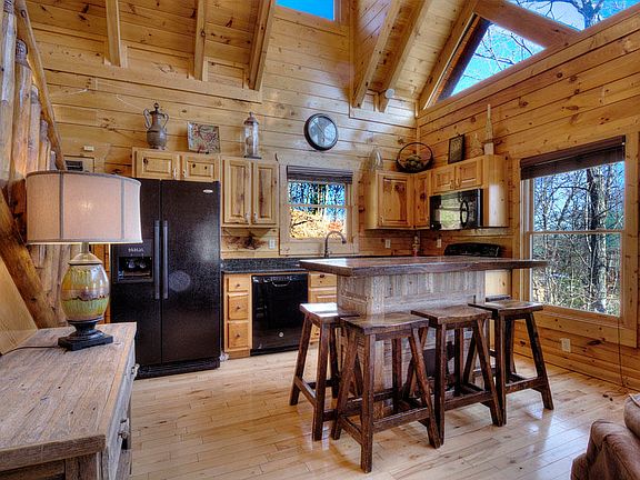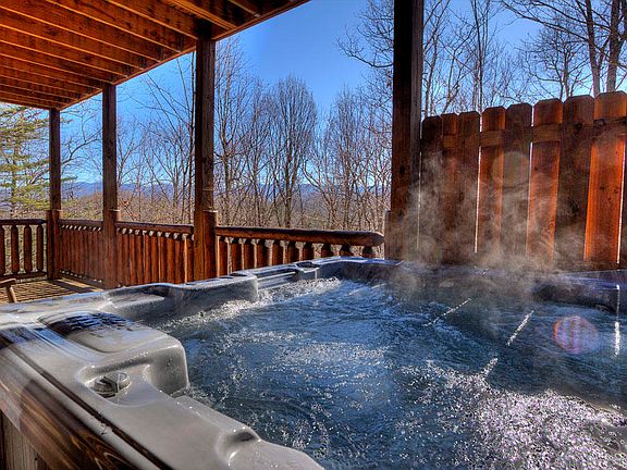 ADORABLE 3 BEDROOM 3 BATH CABIN with GAME ROOM between Pigeon Forge and Gatlinburg. PANORAMIC WINTER MOUNTAIN VIEWS. You will love the BRIGHT living room with WOOD FLOORING, cathedral ceilings & romantic stacked stone fireplace. Open kitchen is equipped with all the comforts of home. 2 SPACIOUS king size master bedrooms - one on each level. 3rd bedroom + bathroom are upstairs in an open loft. Step outside onto one of 2 back decks and enjoy the MOUNTAINS & beautiful wooded setting while soaking your cares away in the hot tub. BRIGHT game room downstairs. EXCELLENT LOCATION- between Pigeon Forge and Gatlinburg.
