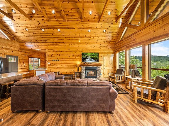 Inside, you'll find a private indoor pool, a dedicated theater room, and a spacious game room complete with arcades and a pool table. The hot tub is perfectly positioned to take in the views, while custom stonework throughout adds a touch of rustic elegance. Thoughtfully designed with both comfort and entertainment in mind, this property is a turn-key income producer.