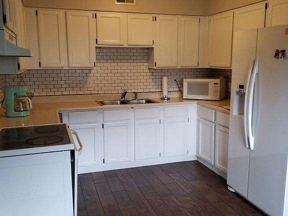This affordable main floor unit has beautiful durable, porcelain tile flooring in the living room, hallway, kitchen, and laundry area. The spacious eat-in kitchen has a tile backsplash. The master bedroom has its own full bath. Additional amenities include laundry in the unit, 2 full baths, and spacious bedrooms. The garage is detached (3rd one from the south end). HOA fees cover the pool, clubhouse, exterior maintenance, lawn care, and snow removal. Appliances are "as is".