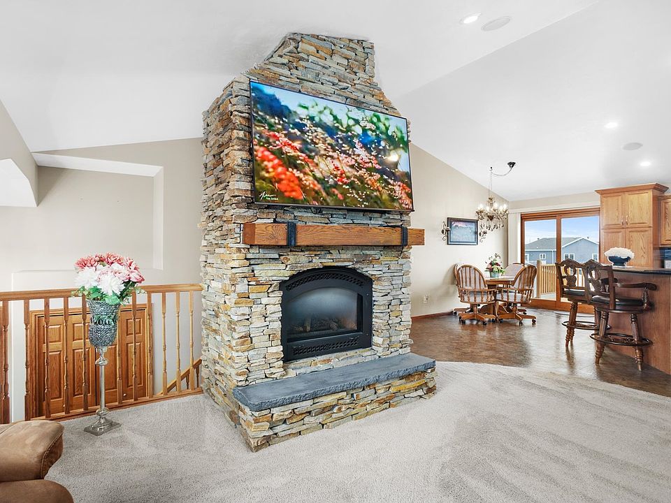 Welcome to 2013 Valley Bluffs, a stunning residence located in the esteemed Bluffs subdivision just moments away from the Minot Country Club. As you enter, you are greeted by a spacious foyer that sets the tone for the elegance and comfort found throughout this home. The open concept living room and kitchen area beckon with a beautiful stone gas fireplace, creating a cozy and inviting atmosphere. Step through the sliding door to the expansive deck, offering a perfect spot to enjoy the large backyard for outdoor gatherings and relaxation. The custom kitchen is a dream, featuring ample cabinetry, generous counter space, stainless steel appliances, DuraCeramic flooring, and vaulted ceilings that enhance the bright and airy feel of the space. On the main floor, you'll find three bedrooms and a full bath, including a master suite with a walk-in closet and a private bathroom complete with a skylight for natural light. The lower level offers two additional bedrooms, a full bath, a convenient laundry room with a sink and counter space, and a spacious family room ideal for entertaining or unwinding with family. This home also boasts a three-car heated garage with floor drains for added convenience. The large yard is beautifully landscaped, featuring a large shed on a concrete patio, a vinyl fence for privacy, and curbing around the house, adding to the property’s charm and appeal. Don't miss out on the opportunity to make this home your own!