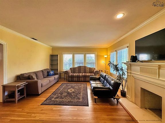 Picturesque Tudor Revival brick home on a quiet street just minutes from Wichita Falls Country Club. Original hardwood floors, natural light, and a front porch for your rocking chair. The kitchen features floor-to-ceiling cabinets and the master closet is practically another room. 2 full bathrooms that have had updates. A fully fenced backyard and a covered decked provide a wonderful entertaining space outdoors. New roof installed September 2025.