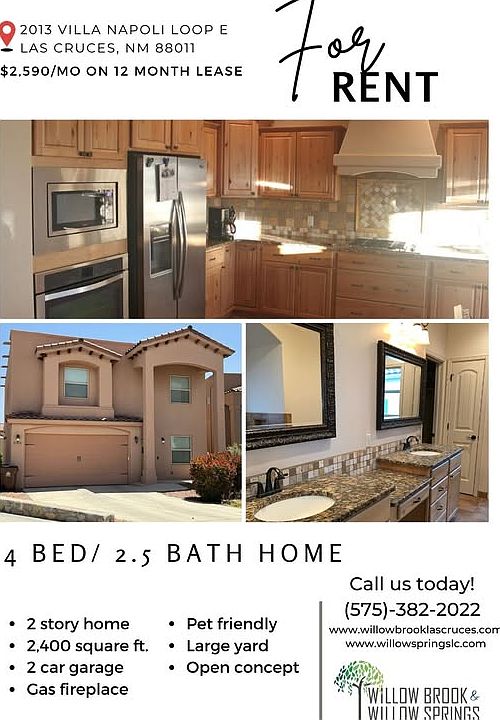 This is a 4 bedroom, 3.0 bathroom, single family home. This home is located at 2013 Villa Napoli Loop, Las Cruces, NM 88011.