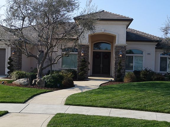 This home is a MUST-SEE! Located in the gated neighborhood La Vina (which has 2 private parks), at the end of a quiet cul-de-sac, it was custom built by Cornerstone Construction. The entryway has stunning 16 foot ceilings, with 10 and 12 foot ceilings in the remainder of the home and crown molding throughout. The gorgeous kitchen has a built-in refrigerator, walk-in pantry, an abundance of cabinetry, and a warming drawer. The family room and media/game room have surround sound, and the whole house is wired for sound with separate volume controls throughout, including the patio. A large covered patio leads to a sparking pool, complete with diving board and solar heating which allows for comfortable swimming May-October. The beautiful front and back landscaping, pool, and open floor-plan are an entertainer's DREAM! Call (559)679-6663 to schedule a viewing.