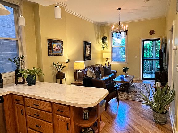 Available August 1. Open concept modern apartment in a beautiful neighborhood. You also have a deck outside your back door, truly an urban oasis. The bedroom easily fits a queen bed and has a large closet. Force air air conditioning and heat. The apartment includes a private storage closet in the basement and space for one bike. Tenant is responsible for electric, gas and WiFi.