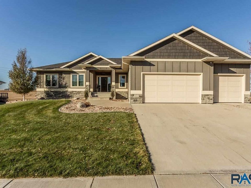 Beautiful one owner home in the rolling hills between Brandon and Sioux Falls. This ranch style home has 3 bedrooms on the main and 2 baths. This home is amazing from the moment you pull up. When you step in-side you will be greeted by a large open entry that leads to a living room with large windows, tray ceilings, and is open to the dining/kitchen area. The kitchen is elegant with floor to ceiling cabinets, along with granite countertops. You also can enjoy the large island and pantry. There is a mud/laundry room off the kitchen. The dining room has a slider that leads to a great covered deck. The master bedroom is large and has a great master bath that includes double vanity and tile shower. The LL has garden level windows, 9' ceilings, and grand display that includes a fireplace. There are 2 more large bedrooms along with another full bath in the LL. The large 3 stall garage has floor drains, hot and cold water, and a heater. Come check it out today.