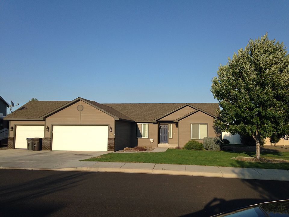 Newer single level house with three car garage. three bedrooms with a bonus room that could be used as a bedroom, currently use as an office, no closet. Kitchen with breakfast bar and eat in area, frig, dishwasher, disposal, range, over the oven microwave. Large master with walk in closet and bathroom. Large 3 car garage with opener. Low maintenance yard with underground sprinkler. Covered patio with large concrete slab. tenant pays water, sewer, garbage, power