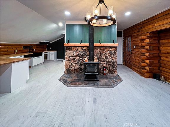 PRICE DROP! SELLER IS MOTIVATED!! Here's your chance to own a fully renovated LOG cabin! This home is built with real oak logs, which gives incredible character to the exterior of the home and the interior of each room which makes for the best insulation. This home is on "The Loop"- a private circle which has no through streets so it's very quiet. End every day with breathtaking unobstructed views of the sun setting behind a landscape of mountains, pines, and the city below. This newly renovated open floor plan kitchen has a deep stainless gun metal sink with a commercial faucet and butcher block countertops with a food grade mineral oil finish. No slamming the cupboards! All cabinets are new with soft closing drawers and doors. The laundry room comes equipped with gas hookups for a stackable washer and dryer and has a custom barn door. The living room has an open floor plan and an excellent view of the sunset and mountain range leading to the ocean. Enjoy lounging on double decker decks for summer hangouts or morning coffee. The floors throughout are a stone composite vinyl wood that is waterproof and scratch-proof with tile in the bathrooms. Enjoy gorgeous custom walk in showers and tile throughout. This home comes equipped with central AC and heating, but also has a wood burning fireplace and ceiling fans in each bedroom. Being so close to Lake Gregory, Big Bear, and many ski resorts, this home is ideal for an Airbnb or short term mountain rental. Bonus- The unfinished basement is approximately 1,000 sq ft! Makes a great workshop or could be finished out. Walk today! This home won't last!