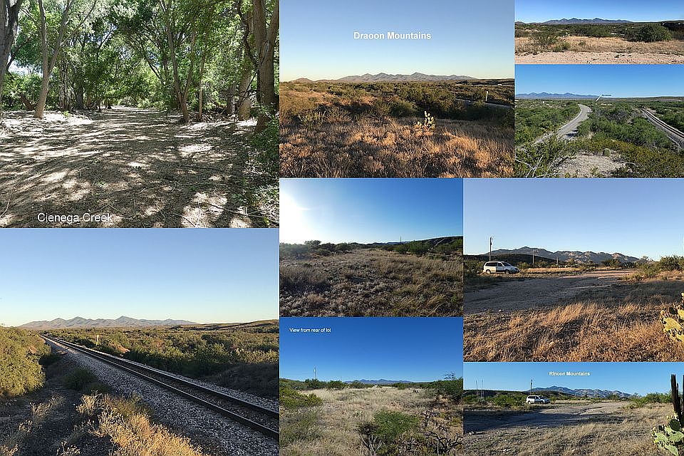 One of my favorite lots, love to camp out here! Eastbound trains run adjacent to the lot (westbound run on a track a half-mile north), Cienega Creek Preserve (a County Park) is adjacent to the railroad tracks. The castle on the hill can be seen from the lot. RH zone allows mobile homes & horses. Electric is available at lot, septic & well necessary. Water-table is near the surface. Cienega Creek is one of the only perennial streams in SE Arizona. Assessor says it's 4.01 acres but GIS map data shows it's 2.74. Since the lot existed before 1985, the Pima County Assessor certified that it is "grandfathered" into RH zoning, which requires 4.3 acres. Very unique lot!