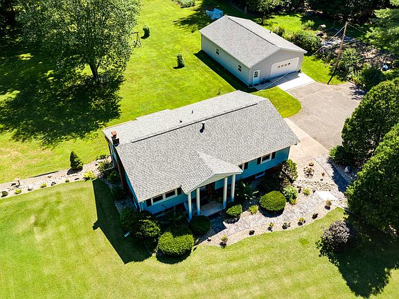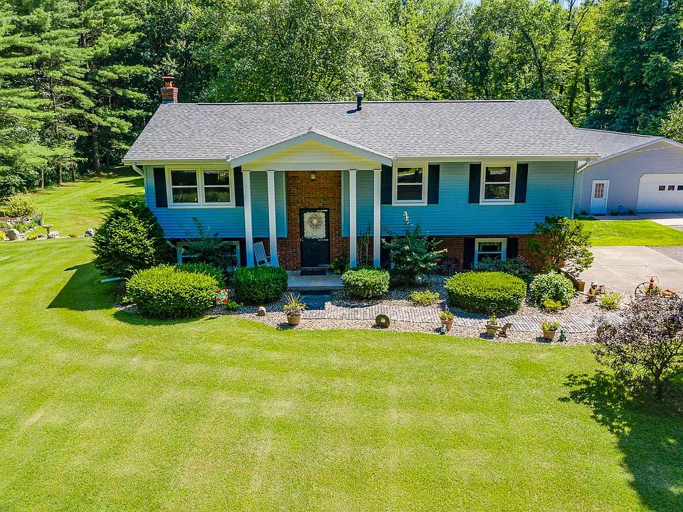 Immaculate 1-owner home located on a gorgeous 4 acre property awaits its new owner. This home has been so well-loved and it shows. Newer roof, windows, siding, and gutters/soffit/facia are just a few of the big ticket items that have been taken care of here for the new owner. Large living room with new carpeting opens up to the formal dining room which features hardwood flooring. Plenty of cabinet and countertop space in the kitchen, full appliance package, and a small eat-in area. Large master bedroom with full attached bath. 2 additional large bedrooms with hardwood flooring and a full hall bath finish out the upper level area of this lovely home. Head down a few steps to the nice family room which contains a built-in bar and wood-burning stove to keep you cozy on those brisk fall evenings. Laundry and 1/2 bath finish out this lower level area. 2-car attached garage has hardwired hookup for a generator (portable generator and wires included in the sale). The fabulous 30'X46' insulated and heated pole barn is perfect for the hobbyist and for storing all of your toys. Be sure to walk this beautiful property and take in all of the lovely landscaping, lawn, and surrounding woods. You are going to love this place. Call today to schedule your private tour. **USDA financing available on this property!