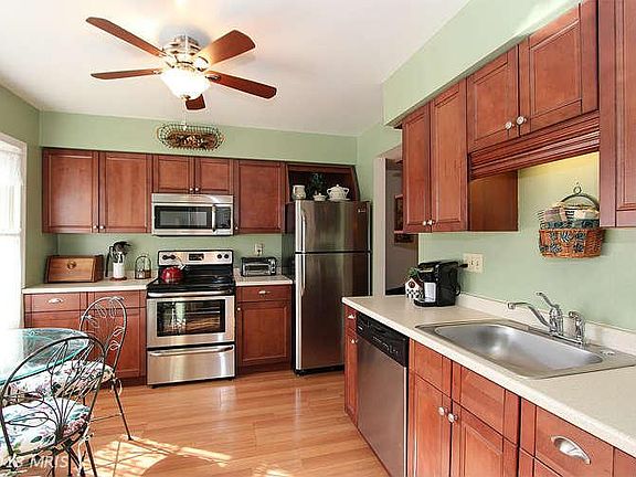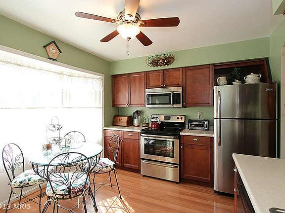 Lovely TH on SUPERB lot backing to treed green space! Many updates incl. new carpets, stainless appliances,2" blinds, fresh paint (interior & exterior), updated baths & newer HVAC. Sunny T/S kitchen w/ big window, master BR w/ private bath, finished w/out basement w/ full bath. Rear deck off main lvl. Landscaped w/ no grass to cut!