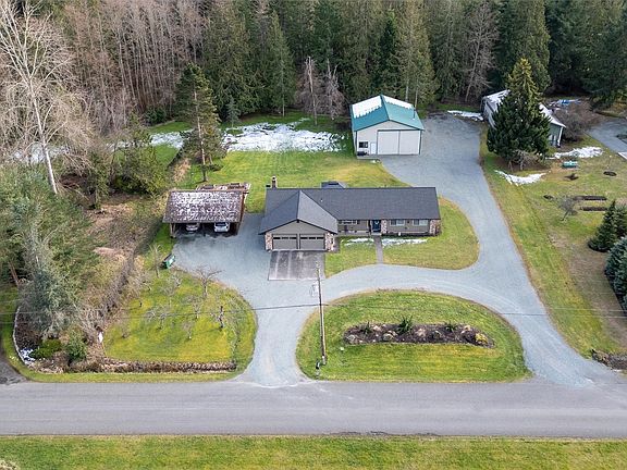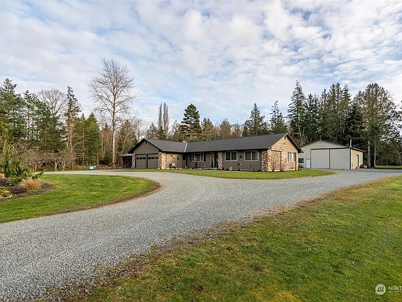 Awesome North facing home with stunning Skagit Valley views and sunsets. One level rambler with an open floorplan on 5 level usable acres in the desirable Conway area. Fantastic kitchen with large island and seating for 5. Newly updated main bathroom with beautiful tiled shower. Two car attached garage, large carport, and a detached 36 x 50 heated shop with a bathroom. RV parking and septic hookups. Plenty of space for it all!