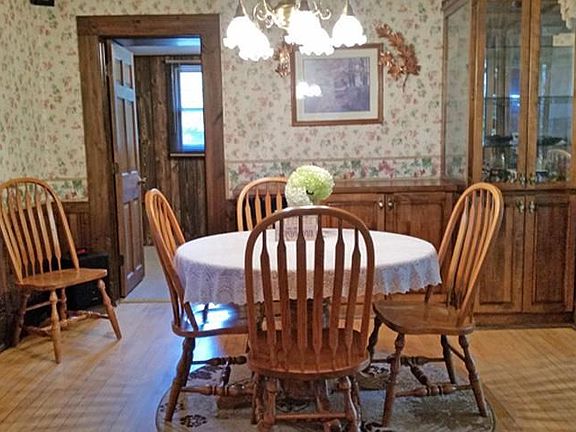 JUST A HOP, SKIP & A JUMP...from medical complex just north of the city on a picturesque 2.95A rural setting is this 4BR, 2BA brick two-story charmer. This is a perfect place for outdoor entertaining with charming front porch, newer composite deck, gazebo, garden space and great tree-lined backyard and side yard big enough for a ball field for the kids. Main floor features modern kitchen with breakfast bar & appls, full bath, LR w/wood burning FP & dining room w/built-ins, wood floors and access to sunroom w/gas stove, BR and office/5th BR. Second floor features 3BRs and lower level has family room w/wet bar, full bath and storage/laundry area incl the washer/dryer. C/A, new natural gas furnace in 2013 and two 28x36 detached garages (1 built in 1969 & 1 in 2004) w/bldgs. offering transferable warranty on metal shingle-look roofs which were new in 2013. (Sunroom has no F/A heat or A/C per seller)