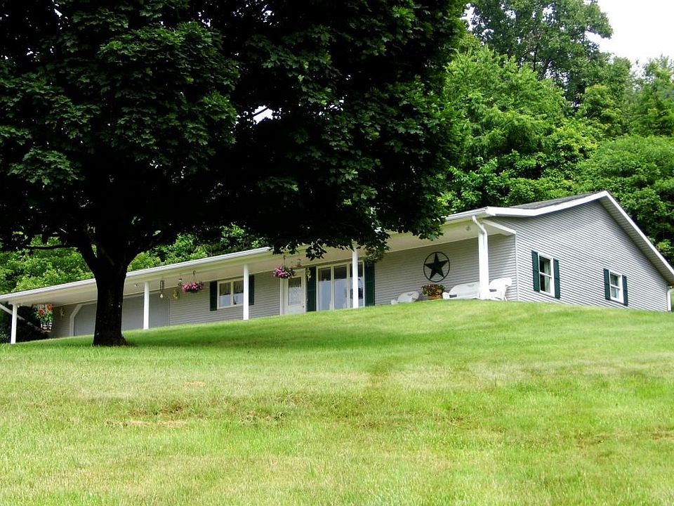REALLY NEED TO SEE THE VIEW FROM ''THE TOP'' Overlooking acres of Hocking Hills nestled on 5.79 acres yet not far from a hometown community. Gorgeous well-maintained and newly painted and decorated. On full display from the 64' front porch and every window is a photograph like scenic view. Huge 40 x 40 barn, spacious family room, kitchen open to great room. Property could easily accomodate horses. Restored cabin on property.