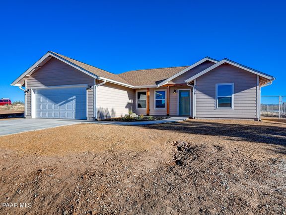Brand new build! This 3-bedroom, 2-bathroom new build is sitting in a great location between Phoenix and Prescott. The home features an open concept with a split floor plan. The modern layout is well used and creates a roomier feel. Enjoy the laundry room just off the garage and kitchen. The fenced backyard, two car garage, front landscaping and quartz countertops are just a few of the things that make this home a must see! Room to park your RV!