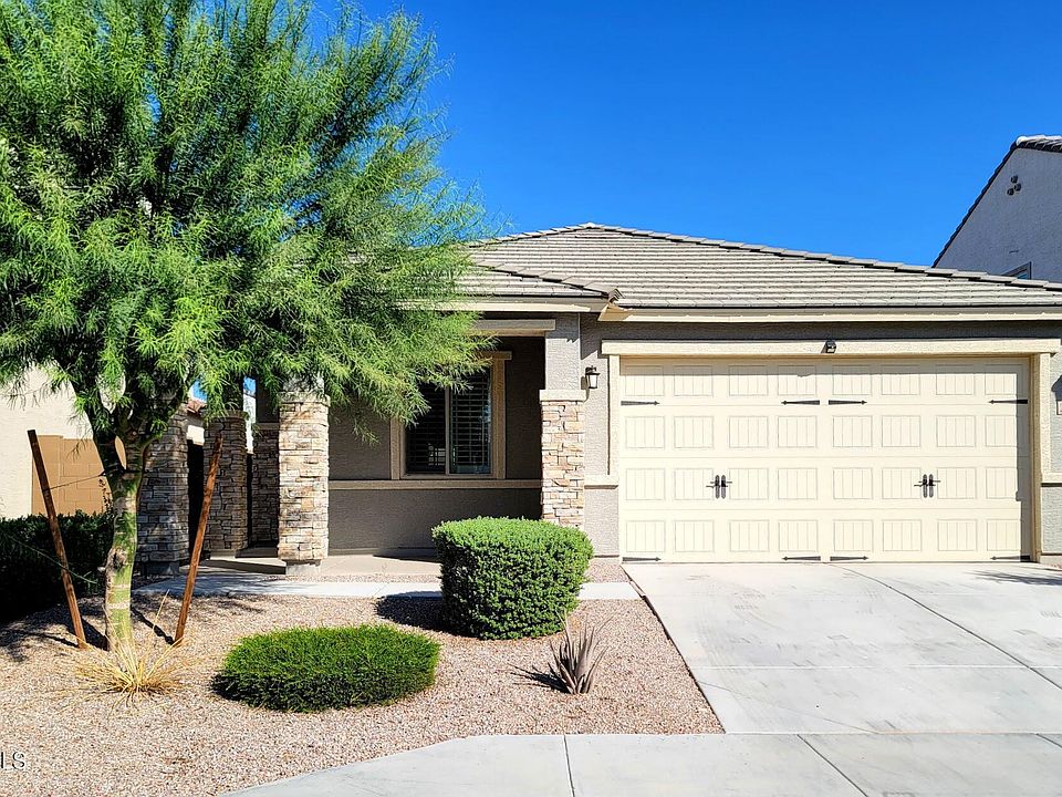 STUNNING SINGLE-STORY HOME WITH 3 BEDROOMS 2 BATH + DEN. MOVE IN READY!!!!! OPEN FUNCTIONAL AND INVITING LAYOUT THAT FEATURES AN EXTERIOR STONE. DESIRABLE KITCHEN WITH CLASSIC BEECH TOFFEE CABINETS, GRANITE COUNTERTOPS AND BARTOP, BUILT IN GAS STAINLESS STEEL APPLIANCES. 5.1 SPEAKER SURROUND SYSTEM, INTERIOR 8' DOORS THROUGHOUT THE HOUSE, TILE INCLUDED EVEN IN THE BEDROOMS, OWNER'S BATH SHOWER WITH SEAT AND TILE SURROUNDS. NEUTRAL INTERIOR TWO TONE COLOR PALLET AND ENERGY EFFICIENT TANKLESS WATER HEATER. ESCAPE IN YOUR BACKYARD WITH LUSH LANDSCAPING AND EXTENDED PAVER PATIO FOR ENTERTAINING. A MUST SEE!!!