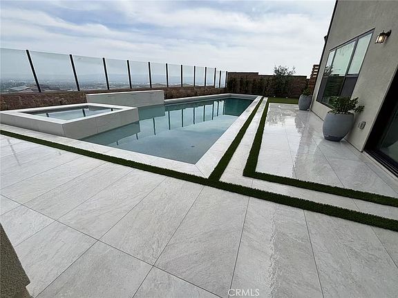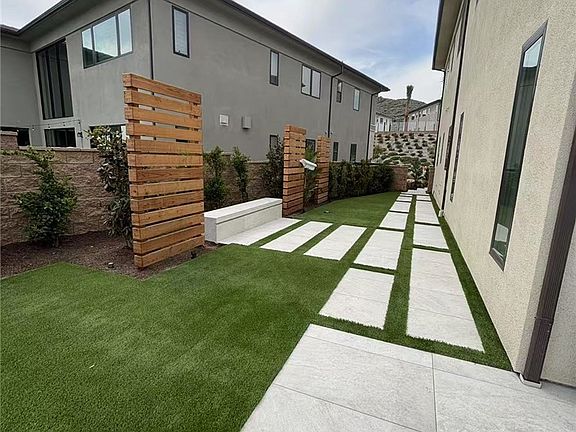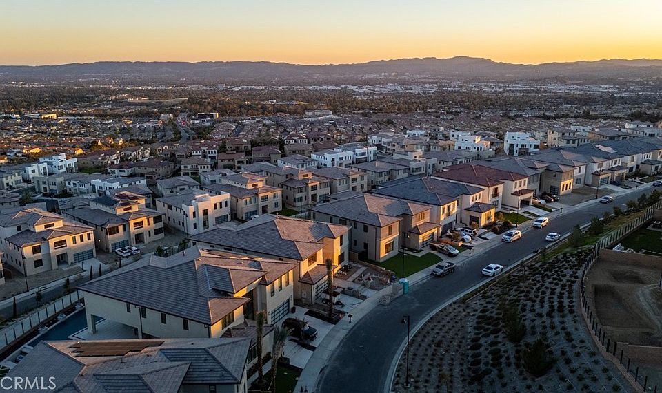 Located within the guard-gated Westcliffe at Porter Ranch community, this home continues to impress with highly upgraded finishes throughout. The main-level hard flooring adds elegance and cohesion to the bright layout, highlighted by soaring ceilings and natural light. A chef's kitchen is fully equipped with quartz countertops, soft-close cabinetry, a large central island, a wine fridge, and high-end appliances: perfect for hosting guests or casual family dinners. In the living room, a mounted flat-screen TV and statement fireplace offer both function and style. Step outside to a fully appointed backyard complete with a BBQ area and two striking palm trees that enhance the home's striking curb appeal.
