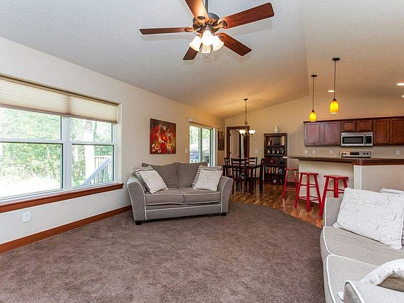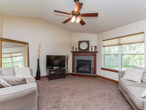 Must see Ranch home built in 2010. Great floor plan! Front entry, hallway & kitchen/dining room combo have upgraded laminate flooring throughout. Kitchen offers a breakfast bar for those casual meals. Dining area is spacious with a great view. Sliding door opens to a 10'x10' deck w/ a very private backyard (non-developed, wooded lot behind). Open Living Room offers a corner fireplace that will keep you warm on those cool fall evenings.