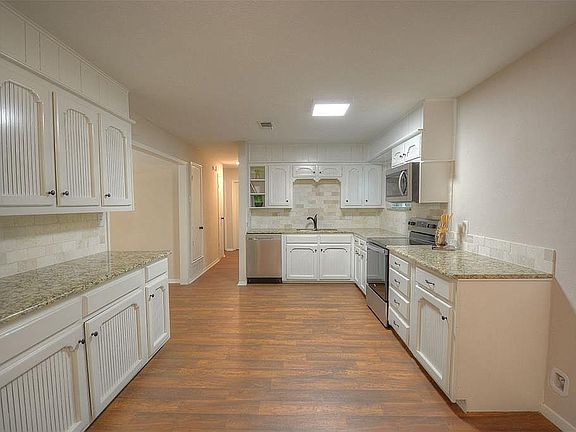 LOTS OF UPDATES! Large remodeled kitchen showcases an abundance of granite countertops, beautiful tumbled travertine backsplash, under-mount sink, stainless appliances, large dining area. New carpet in bedrooms plus easy clean wood look vinyl in kitchen & baths. Bath updates include a new tub & surround, toilets & vanities. Home has pretty 3-tone interior paint thru out, new light fixtures, oil rubbed bronze hardware, new Low-E windows, & blown-in attic insulation. 4th bedroom can be 2nd living. Extras include oversized utility room for work or play, large fenced backyard, storage building, extra parking with long 2nd driveway, covered deck & custom blinds. Cul de sac location & popular schools. Check it out!