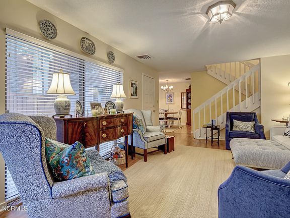 Delightful two story 2 bedroom, 2 1/2 bath low maintenance, well-cared for Birch Creek Condo. A fenced private courtyard welcomes you and offers a great space for outdoor living and entertainment. From the courtyard you'll enter home through glass storm door and newly painted blue front door which when left open, brings in additional light. Sliding glass doors from both living room and kitchen also open up to your private courtyard and bring in more natural light. Wood laminate floors throughout first floor, updated bright kitchen, formal dining area, spacious living room with wood burning fireplace, downstairs half bath with laundry closet behind bifold doors, and new water heater installed in December. Upstairs are two large bedrooms both with ample closet space and en suite bathrooms. Both bedrooms have sliding glass doors with Juliet balconies that overlook courtyard. Birch Creek is a tranquil, tucked-away wooded community conveniently located in Midtown Wilmington......only short drive to downtown's Historic District, airport, Wrightsville Beach, UNC-W, shopping and fabulous restaurants. HOA dues include master insurance, exterior building maintenance, landscaping, basic cable and internet, pool, tennis, termite bond, pest control plus water, sewer and trash.