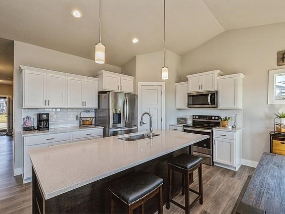 On the golf course! Tanzanite resale only 9 months old. Walkout ranch with beautiful views of the of Legacy golf course. Main level offers 3 bedrooms and 2 baths. Open floor plan with 9 ft ceilings in bedrooms and vaulted through kitchen and living room. Hard surface flooring in public areas. Very bright plan with large windows. The garage was extended by 2 ft in length. Home Backs east, so no hot summer sun! Covered deck walks down to patio area and fully fenced yard with irrigation system. The lower level has been framed and ready for your finish. Enjoy the Legacy neighborhood swimming pool and community clubhouse. Builders plan shows main level square footage as 1,629. All information obtained from Seller and public records.