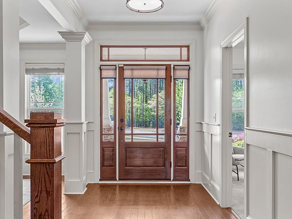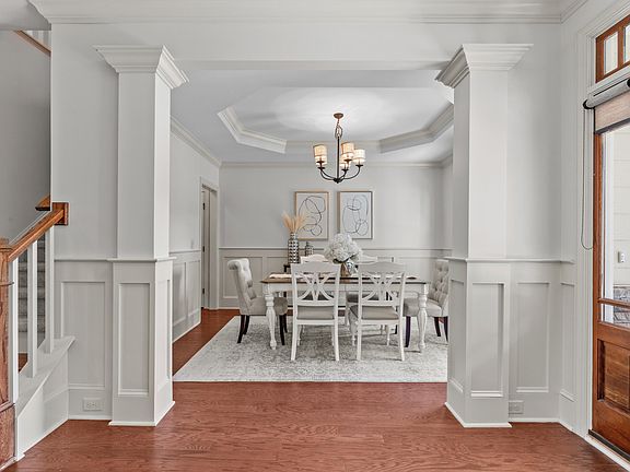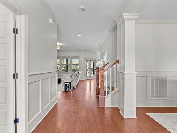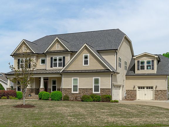 Gorgeous Peninsula at Amberly home featuring 6 beds, 4 full & 2 half baths! Space abounds with open living including large kitchen island w/bar, breakfast area and gathering room w/stone gas fireplace. Family room w/stone gas fireplace and built-ins. Kitchen boasts granite countertops, 2 islands walk-in pantry. 1st floor features guest suite with full bath and formal dining. Huge primary suite with sitting room plus 4 more bedrooms and a bonus on 2nd floor. 3rd garage includes a bonus w/half bath above. Relax on the front porch as well as the screened porch and patio overlooking large backyard. Community has resort-like amenities including neighborhood dog park, pools, fitness center, and more! Close to 540/RTP, shopping, dining, & more!