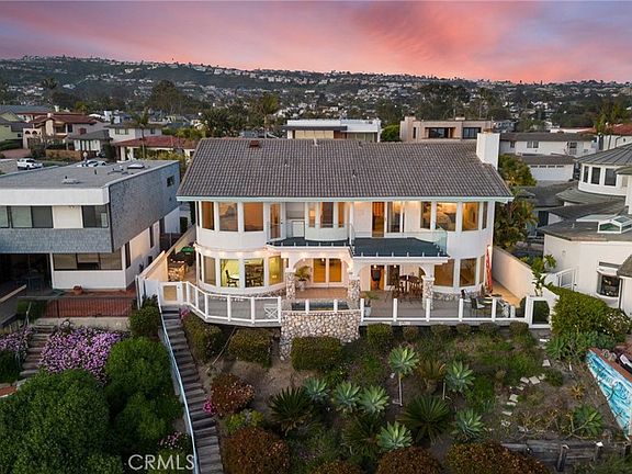 Spectacular Single Family Residence property with an awesome panoramic view of the ocean. Residing on a bluff that has a walkway from the back of the property down to the beach. Custom built back in 1986. Enter the property on the first level and step in to enjoy the Living Room with fireplace. A bar area then separates the Living Room from the Family Room with gorgeous views to the outdoor paitio. There is also a fireplace in this room. The Dining Room also overlooks the patio and has its own beautiful view of the Ocean. The Kitchen includes an eat-in area that also overllooks the patio and ocean view. Appliances include a refrigerator, gas oven, microwave. dishwasher, trash compactor and wine/ beverage cooler. A bay window above the double sink adds to the ambiance of this area. Two bathrooms are on the first level. One is a full bathroom and the other is a half bathroom. Inside laundry with a sink and plenty of storage completes the first level interior. Step out back to the outdoor patio to enjoy the soothing views from the seating areas or the inground rectangular spa. We travel upstairs to the second level and walk in to the primary bedroom that once again overlooks the Pacific Ocean. This room also has its own fireplace and opens out to the second level deck. The deck includes a new glass wall for your safety and security. The primary full bathroom includes a spa tub and a separate shower. There are three additional bedrooms on this level with one of the bedrooms set up as an office with stunning views of the ocean. There is another full bathroom on the level as well. there are many other features that are available to come and see with an onsite visit to this spectacular property. Oh by the way, we also have a three car garage and a circular driveway that provides plenty of parking (8-9 spacws) and inside storage. Come take a look at this riveting opportunity to enjoy the dream of living here! WELCOME INVESTORS!