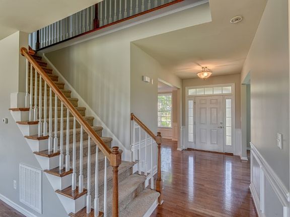 Move-in ready home w/upgrades galore! Wood floors thru-out main level. Formals w/nice moldings. Main level BR. Open Great Rm w/trey ceiling & gas log FP. Huge Kitchen w/granite counters, island, stainless appliances, built-in desk, brand new dishwasher & breakfast area w/window seat. Master BR w/sitting room, dual closets & luxurious bath. Media Rm w/wood floors, palladium windows & built-in speakers. BR5/Bonus w/own bath & WIC. 1-yr warranty provided. Enjoy view & easy access to community lake!