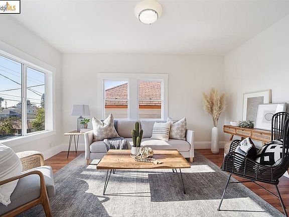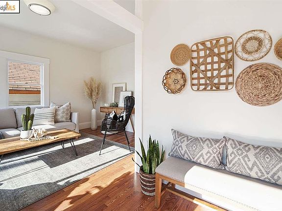 This wonderful Highland Terrace home offers tasteful modern updates paired with preserved original details. Sash windows, 5-panel doors with transom windows, fluted glass door knobs, beadboard wainscoting, and custom millwork hark back to the Victorian era. The updated eat-in kitchen offers a gas range, newer stainless appliances, shaker style cherry wood cabinetry, and a breakfast bar. The back door off of the kitchen opens directly to the large secluded backyard, perfect for entertaining or just relaxing in the shade under a tree on a warm summer afternoon. The updated hall bath features a stone topped vanity, tile floor, and a shower. An additional Jack and Jill bathroom spans the space between the two spacious front bedrooms. A third bedroom at the rear of the house offers lovely views of the tranquil backyard. An attached 1 car garage provides ample parking and storage space. Convenient central location near shopping, dining, and public transit, just minutes to 580, 13, and 880.