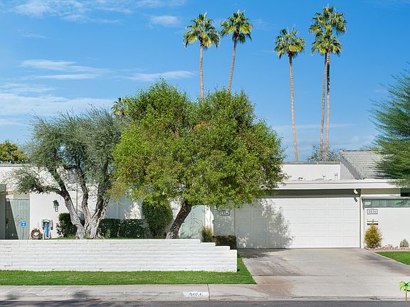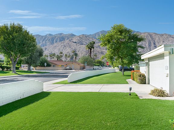 Located in Sunrise Villas on Fee Land (yes you own it). Desirable location in Palm Springs, adjacent to Deepwell Estates west of Sunrise. Condo features a spacious 15x12 Main Bedroom with large walk-in closet, double sinks, dressing area & a sliding door to rear patio, greenbelt, & pool/hot tub just steps away. Vaulted ceiling in the Living room. Washer/Dryer in laundry closet in the private front patio. 1-car garage attached (shared garage) & spot in driveway. The complex offers: 8 pools, 3 spas, tennis courts, pickle ball courts. HOA also includes cable + HBO/ShowTime & internet. Local Amenities close by are Smoke Tree Plaza & The Commons to the south of Sunrise with Ralph's, Jensen's Ace Hardware, shops, restaurants, and to the north on Sunrise library, Sr Center, park space, transportation, airport, more shopping & restaurants. Short drive to downtown PS day & night life. VA/FHA Approved!