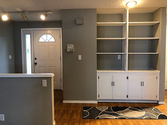 Open family room, kitchen and eating area. Cathedral ceiling in family room lends a roomy feel. Sunken living room with vaulted ceiling. Kitchen has white cabinets and updated countertops. Freshly painted interior. Laminate floors throughout except vinyl in bathrooms. Updated gas furnace. Close to Sprague High School & bus line.