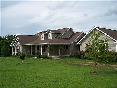 A WONDERFUL country charmer with a wrap around porch on 3 nicely landscaped acres with beautiful woods in back for privacy & view of the changing seasons. Added features include a media room & Koi pond. This well planned home has approx. 4,000 sq. ft.(warm neutral colors thruout with lots of windows & natural light) & a full finished w/o bsmt. The main level has 3 spacious bedrooms, master bath has dual vanities, jet tub, walk-in shower & large walk-in closet. Living room has a cathedral ceiling, gas fireplace & walks out to a wonderful partially covered deck with tranquil views. The bsmt. has a media room, bedroom w/ full bath, large open family room with place for pellet stove, a storm shelter & John Deere room. The 3 car garage is oversized & it is okay to build a shop . Beautiful woods in back of property and a springfed creek goes thru it. Very quiet neighborhood with a deadend st. Vacant & move in ready