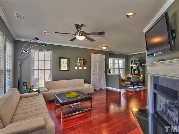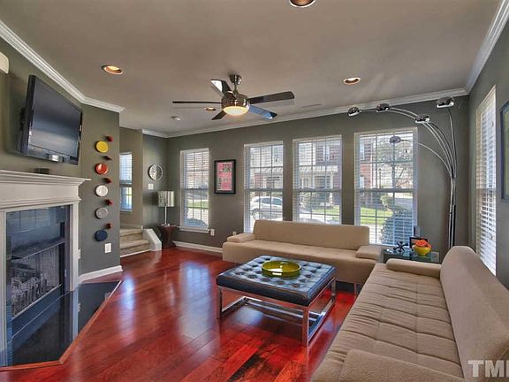 Very well maintained end-unit townhome w/ garage & backs up to a dog-park. Windows through out that provide great natural light. Home features upgraded 5 plank Bruce engineered hardwood floors throughout main living area, gas fire place in FR. Upgraded full-height cabinets and granite counters in Kitchen. Recessed can lighting in kitchen as well as FR & MBR. Marble counters, garden tub & Sep Shower in Huge MBR. Home is Pre-wired for security system, wired for surround sound. This home is a must see.