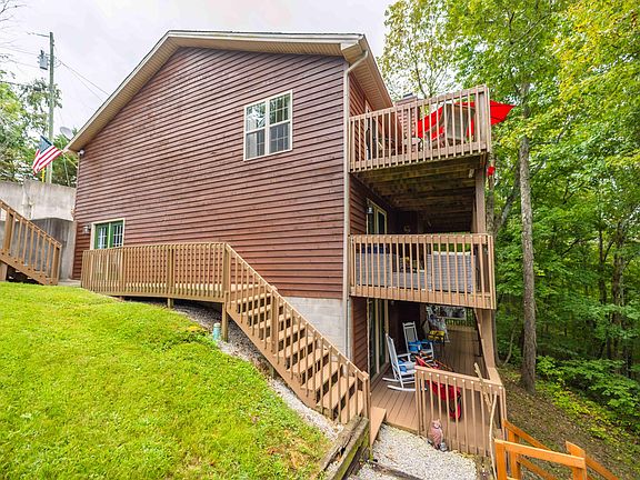 PRIVATE DOCK! Lake front, walk to lake!! 4 spacious bedrooms, 3 full bathrooms, 3 levels of living space with decks on each, an outdoor oasis perfect for entertaining, and a spot to build a garage if you so desire. Custom cabinetry in the kitchen with an office space as well as a kitchenette on top level. Beautifully decorated and plenty of room for friends and family. The basement features a stone fireplace that is wood burning. This would be an ideal property for airbnb as well!